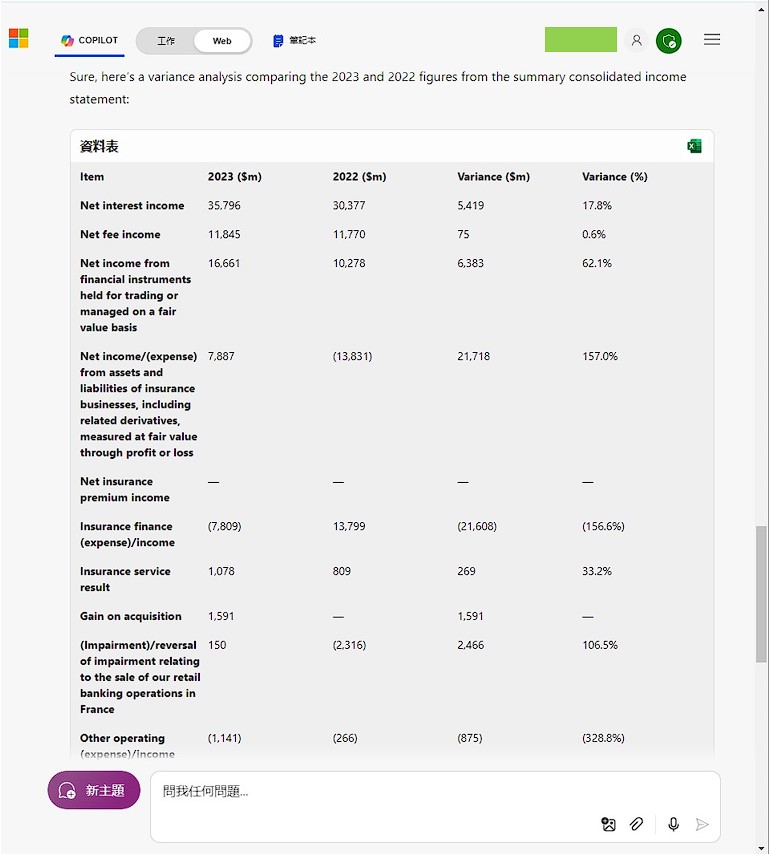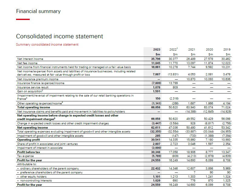 舉例來說,我們來分析匯豐銀行2023年和2022年的財務表現。